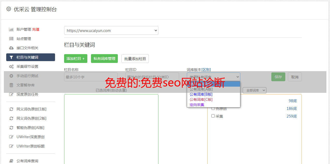 优采云 发布时间: 2022-12-14 21:47免费的:免费seo网站诊断