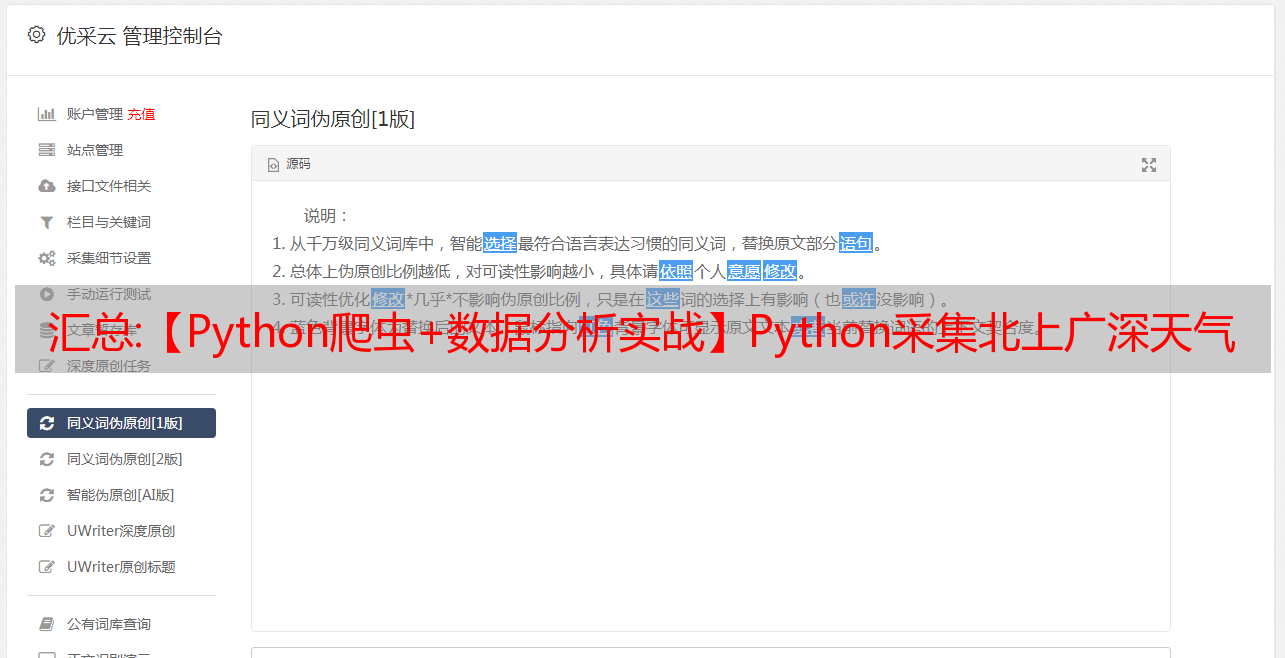 优采云 发布时间: 2022-12-15 22:52汇总:【Python爬虫+数据分析实战】Python采集北上广深天气数据