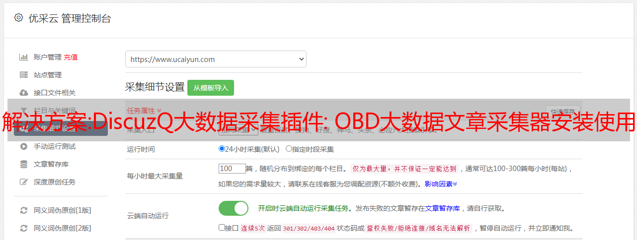 解决方案:DiscuzQ大数据采集插件: OBD大数据文章采集器安装使用教程 For Di