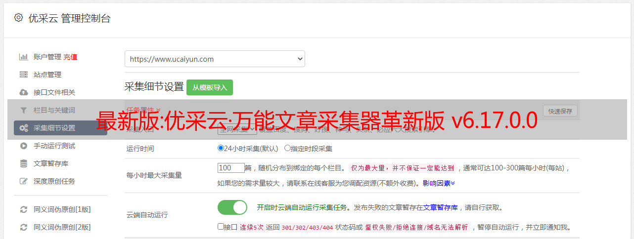 最新版:优采云·万能文章采集器革新版 v6.17.0.0