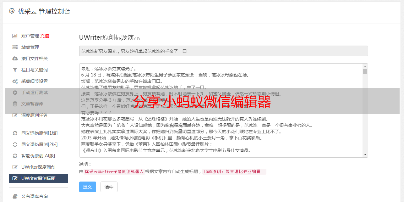优采云 发布时间: 2022-12-16 07:53分享:小蚂蚁微信编辑器