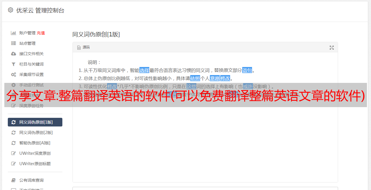 4.支持采集翻译(可以直接翻译采集英文网站)