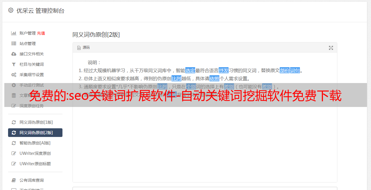优采云 发布时间: 2022-12-16 11:27免费的:seo关键词扩展软件-自动关键词挖掘软件免费下载