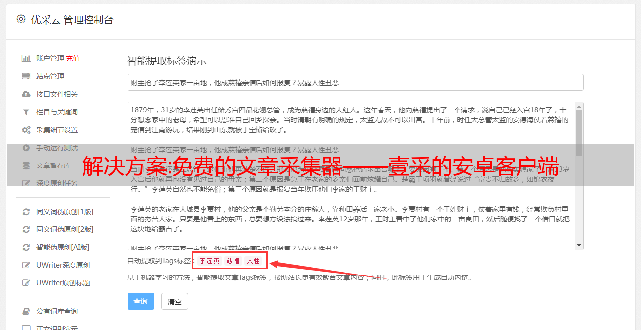 解决方案:免费的文章采集器——壹采的安卓客户端