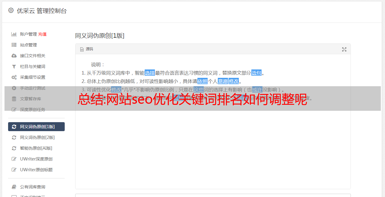 优采云 发布时间: 2022-12-18 06:31总结:网站seo优化关键词排名如何调整呢