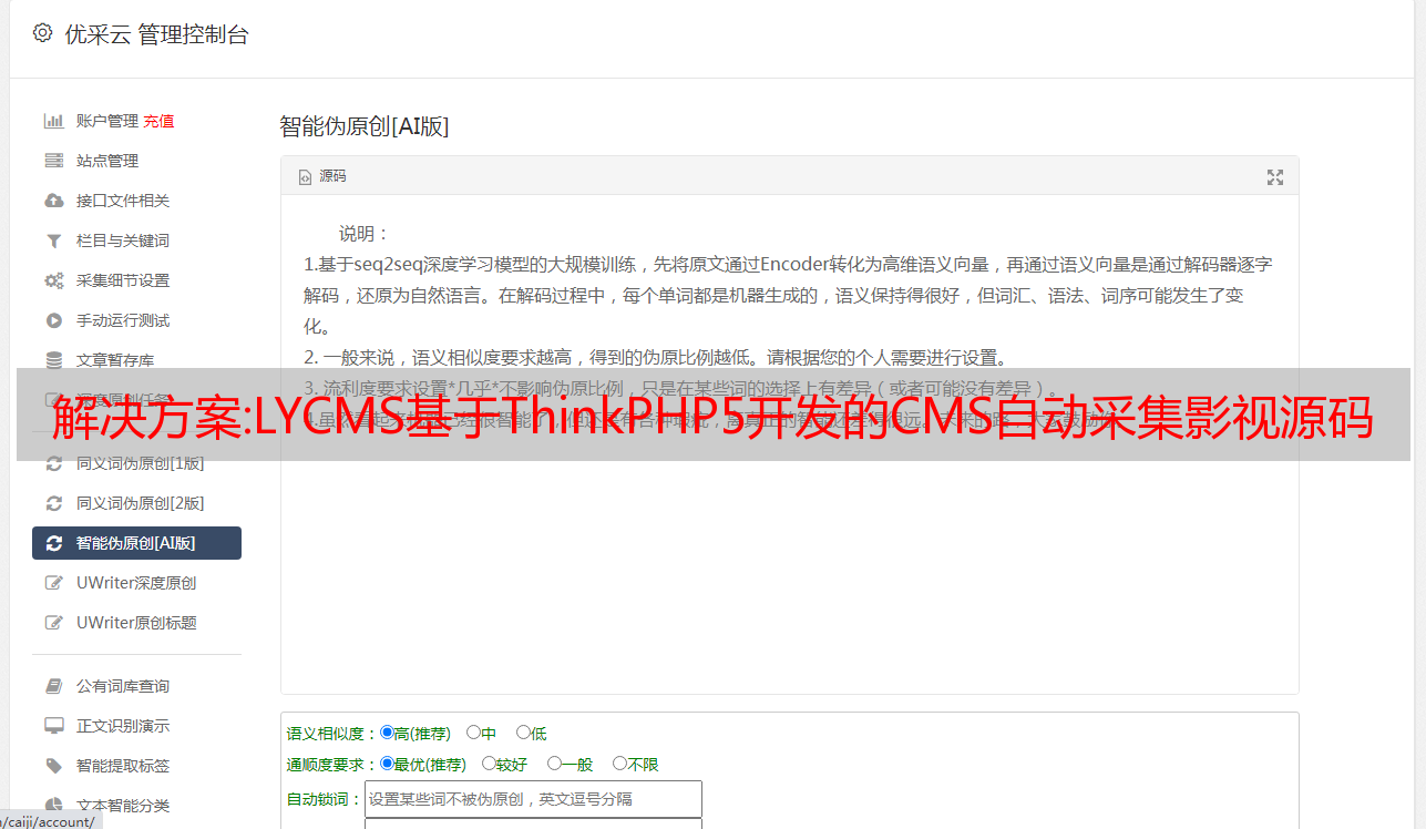 解决方案:LYCMS基于ThinkPHP5开发的CMS自动采集影视源码