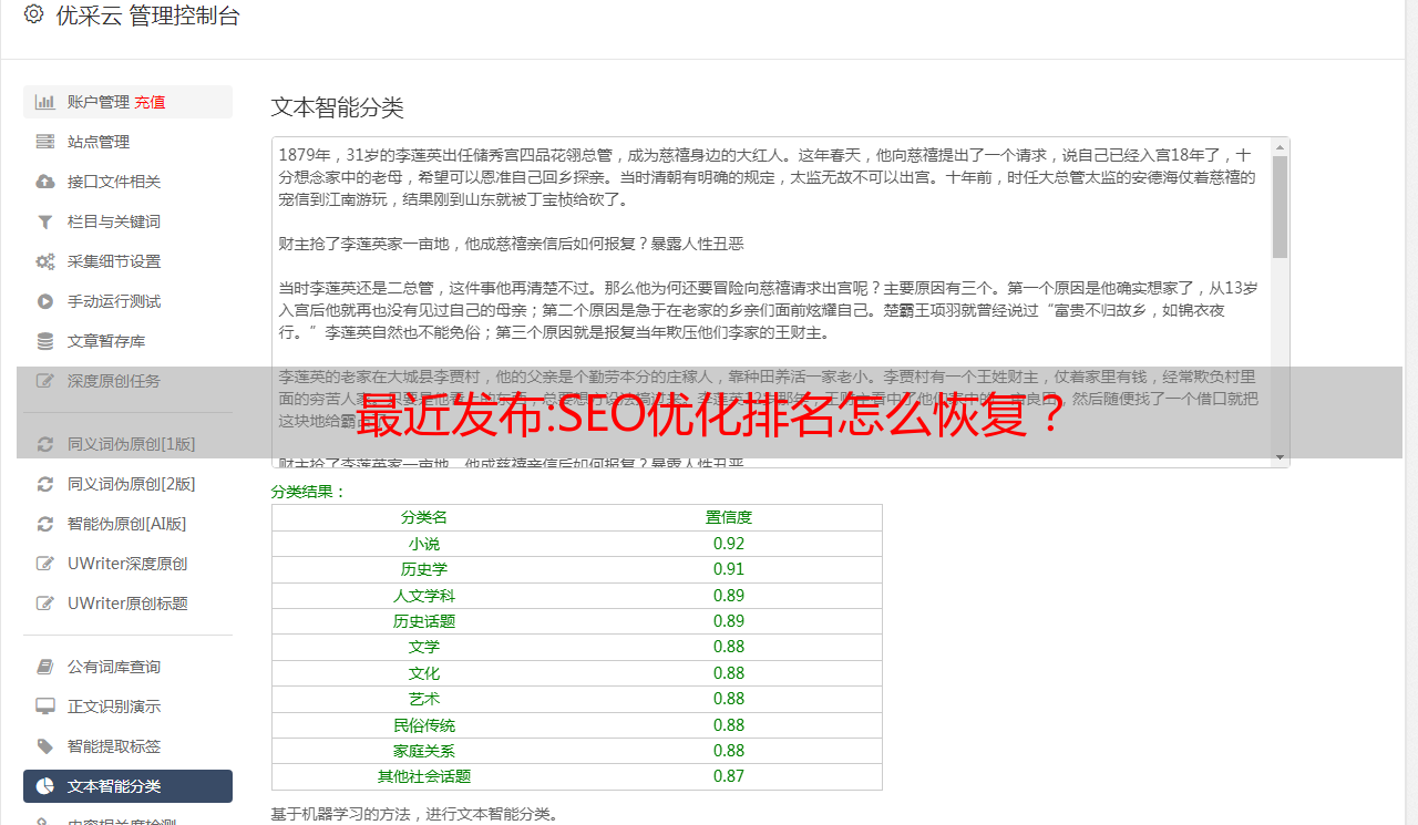 优采云 发布时间: 2022-12-19 09:23最近发布:SEO优化排名怎么恢复?