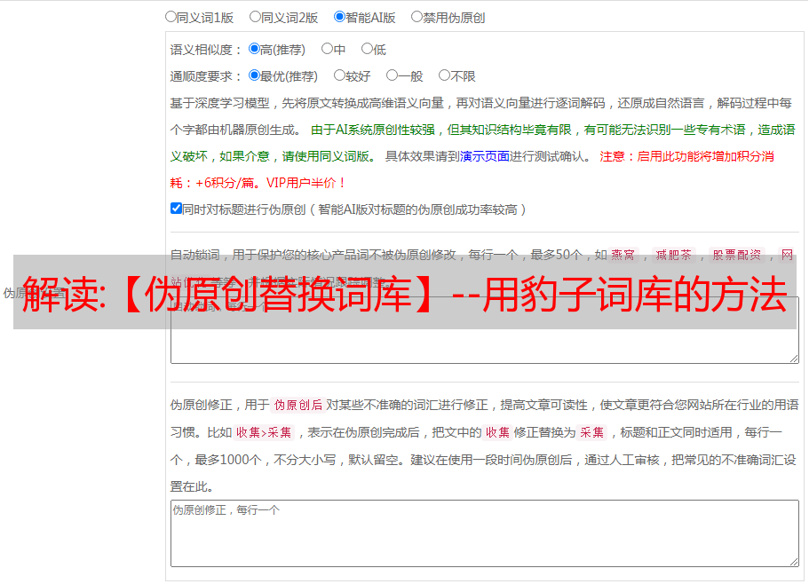 优采云 发布时间: 2022-12-20 18:15解读:【伪原创替换词库】--用豹子词库的方法