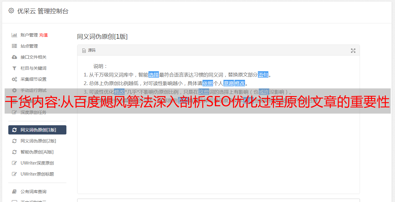 优采云 发布时间: 2022-12-20 18:33干货内容:从百度飓风算法深入剖析SEO优化过程原创文章的重要性