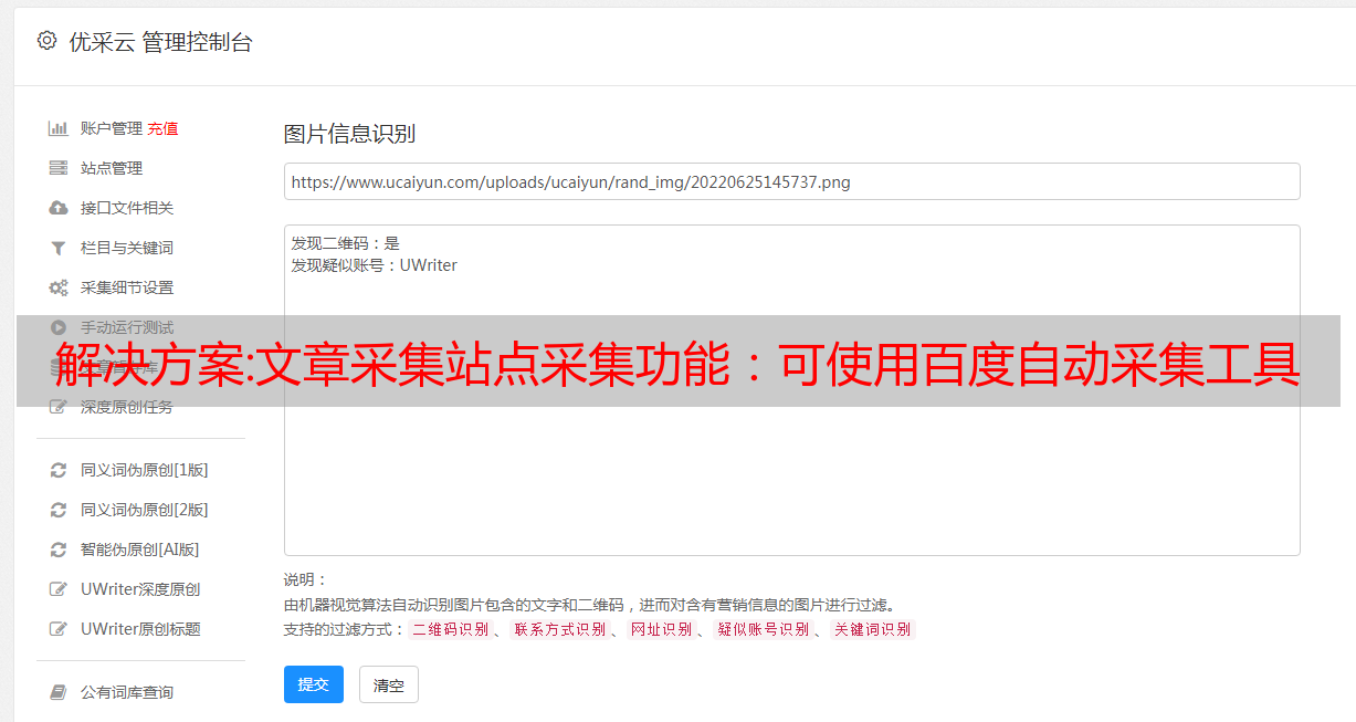 解决方案:文章采集站点采集功能:可使用百度自动采集工具进行采集