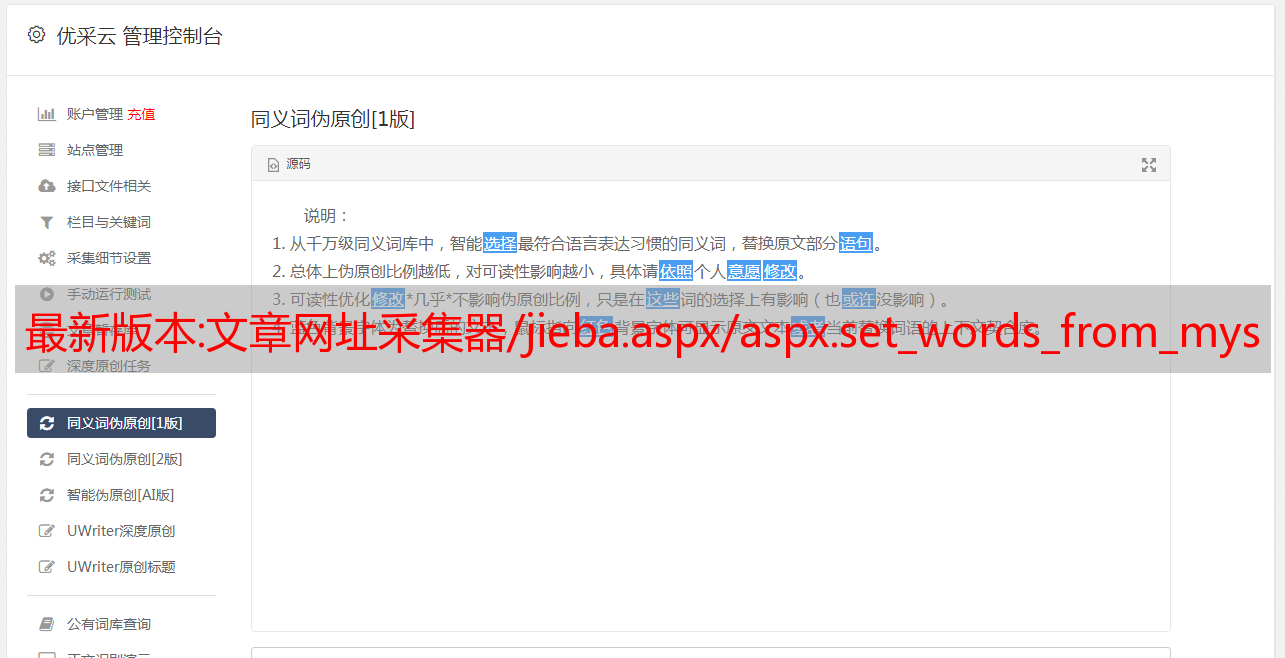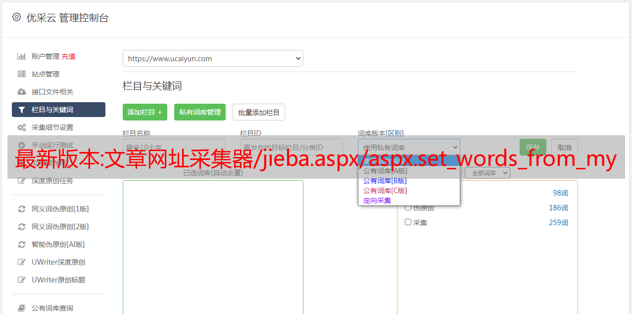 最新版本:文章网址采集器/jieba.aspx/aspx.set_words_from_mysql