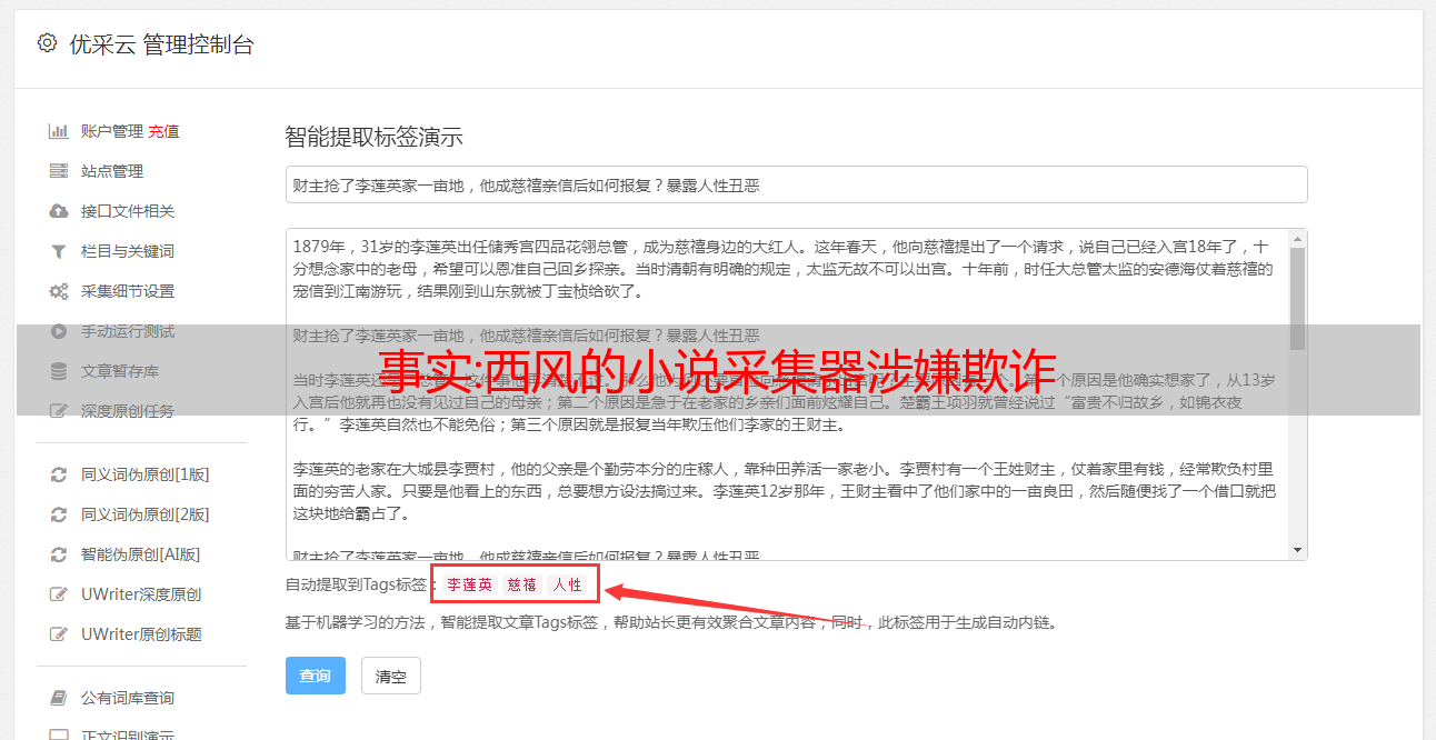 优采云 发布时间: 2022-12-21 07:22事实:西风的小说采集器涉嫌欺诈