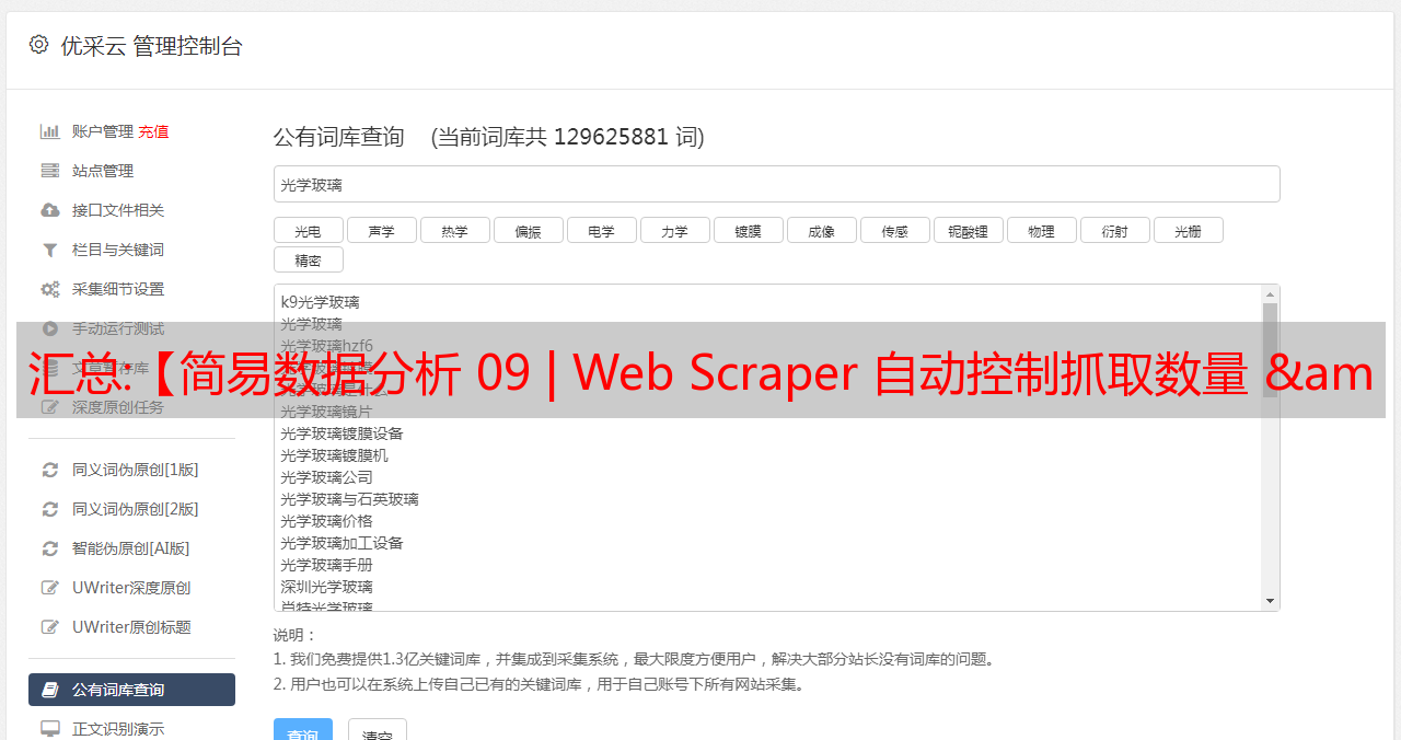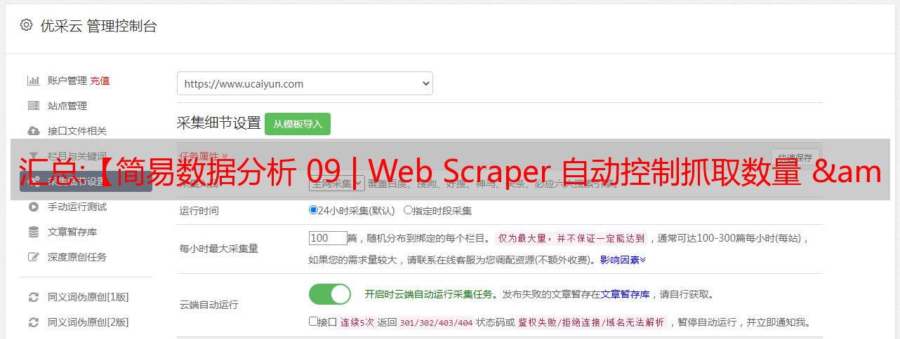 优采云 发布时间: 2022-12-21 11:36汇总:【简易数据分析 09 | Web Scraper 自动控制抓取数量 & Web