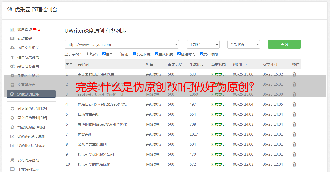 7、伪原创原创网站:利用一些伪原创网站修改内容。