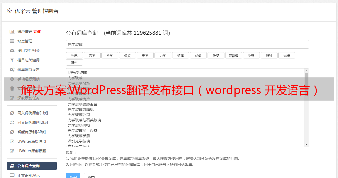 优采云 发布时间: 2022-12-21 22:44解决方案:WordPress翻译发布接口(wordpress 开发语言)
