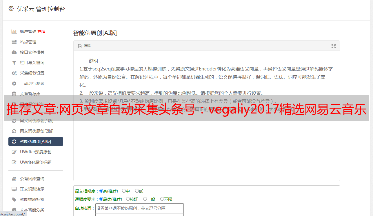 推荐文章:网页文章自动采集头条号:vegaliy2017精选网易云音乐