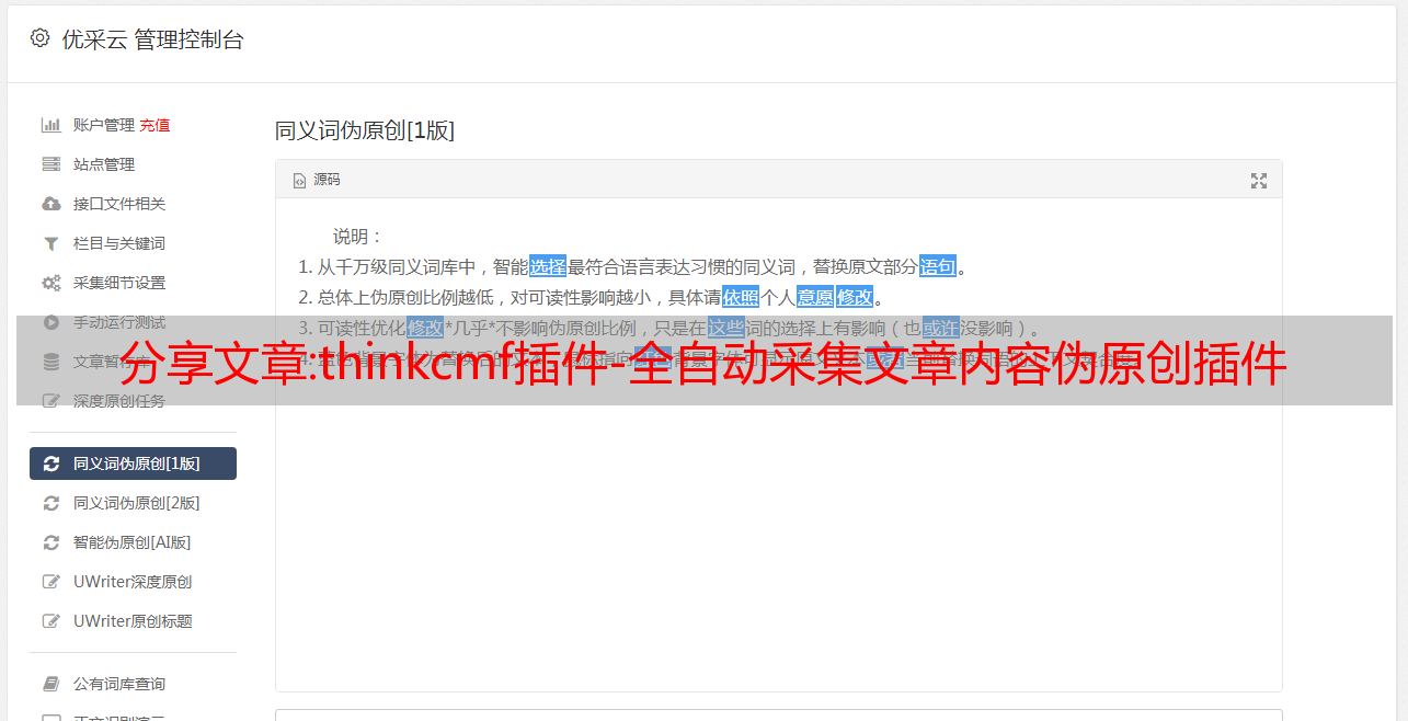 分享文章:thinkcmf插件-全自动采集文章内容伪原创插件