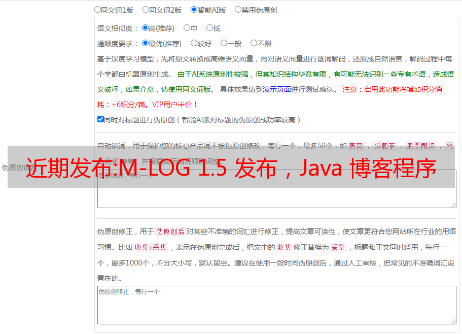 近期发布:M-LOG 1.5 发布,Java 博客程序