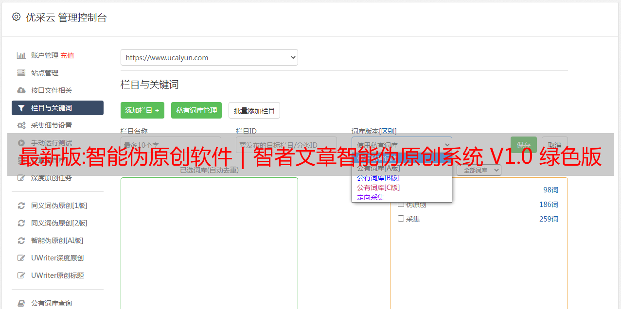 优采云 发布时间: 2022-12-24 07:39最新版:智能伪原创软件|智者文章智能伪原创系统 V1.0 绿色版 下载