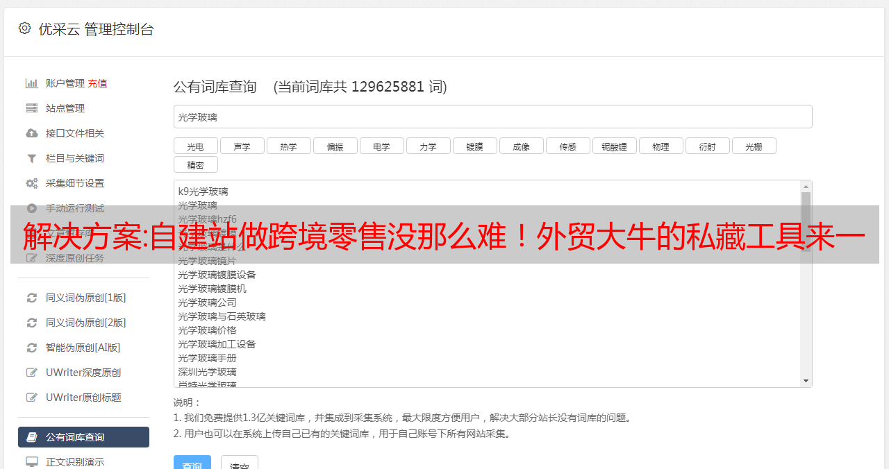 优采云 发布时间: 2022-12-24 11:50解决方案:自建站做跨境零售没那么难!外贸大牛的私藏工具来一波!