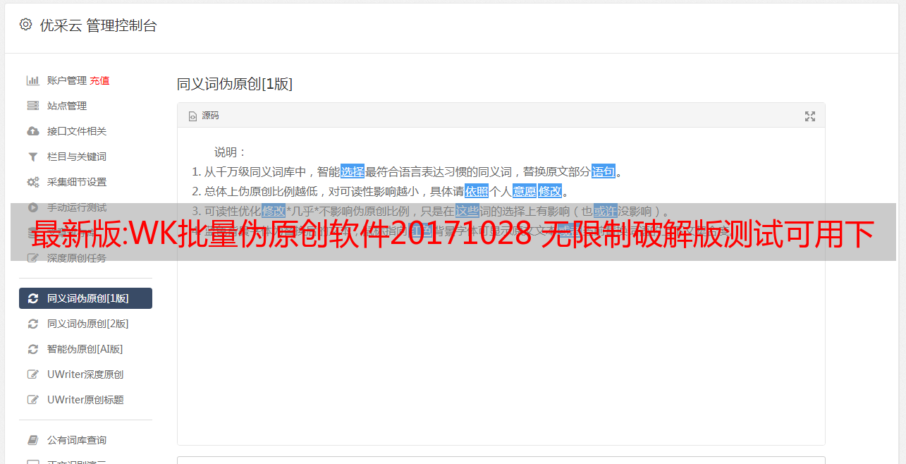 WK批量伪原创软件20171028无限破解版测试可用软件介绍