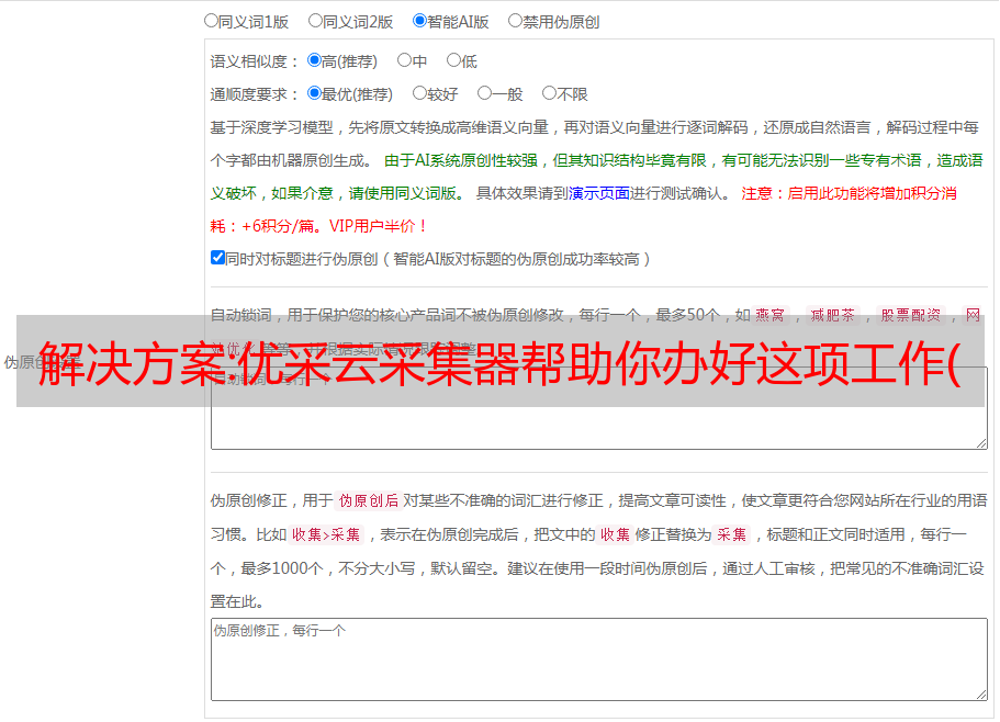 总之,在线伪原创处理是一个十分强大而有效的方法,能帮助用户快速生成独特、有血有肉、有逻辑性的文章内容。如想要快速生成大量高质量文章内容,不妨尝试使用优采云采集器这样强大而又易上手的工具来帮助你办好这项工作吧!