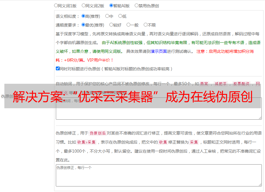解决方案:“优采云采集器”成为在线伪原创处理工具