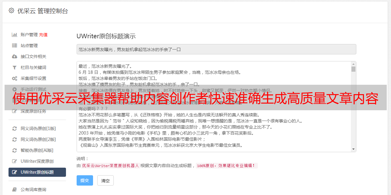 使用优采云采集器帮助内容创作者快速准确生成高质量文章内容