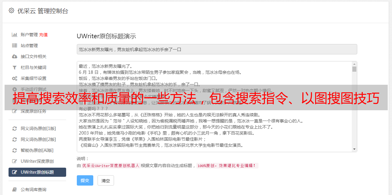 优采云 发布时间: 2021-05-31 19:17提高搜索效率和质量的一些方法,包含搜索指令、以图搜图技巧