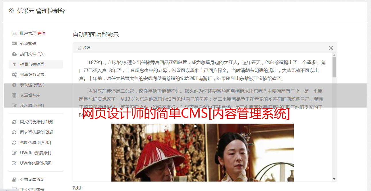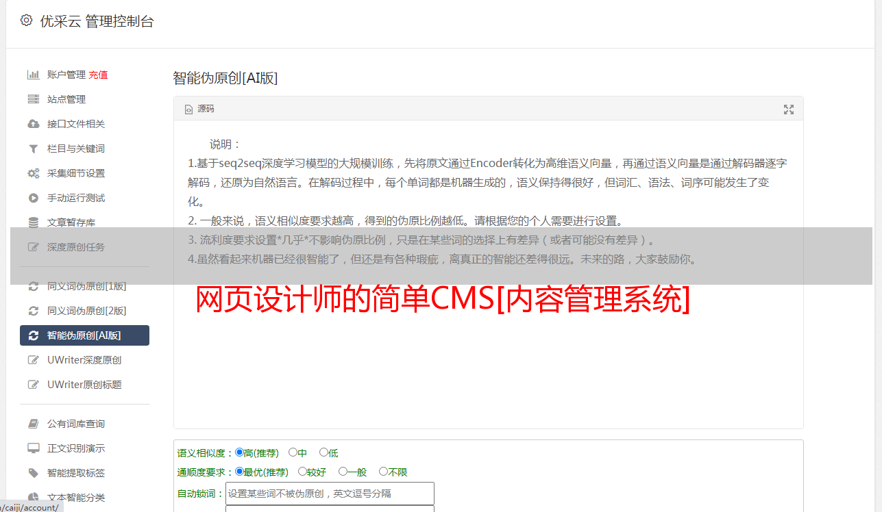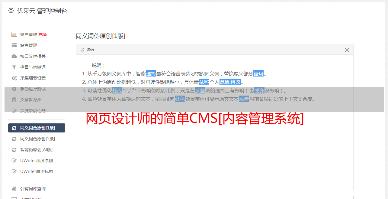 cms Made Simple 是一个易于使用的 网站 内容管理系统,内容简单稳定。使用PHP,MySQL和Smarty模板引擎开发。它具有:基于角色的权限管理系统、智能缓存机制(仅在需要时从数据库中获取)、基于向导的安装和更新机制,占用系统资源少,还包括文件管理、新闻发布和RSS模块, 等等。 。主要特点