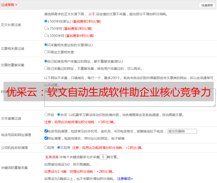 优采云能够通过关键词来获取热门信息,从而快速生成有价值的原创文章。使用该软件,只要用户输入想要写关于什么的文章,就可以根据用户的要求获取相关信息并生成文章。因此,用户无需手工研究信息,就可以快速生成有价值的原创文章。此外,该软件还能够根据用户的要求对文章进行定制化,如选定特定领域、特定时段、特定人群、特定舆情等。