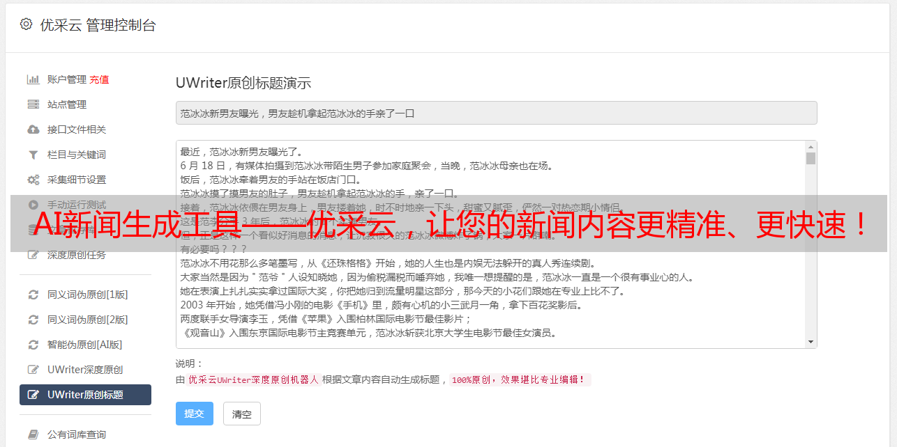 AI新闻生成工具——优采云,让您的新闻内容更精准、更快速!