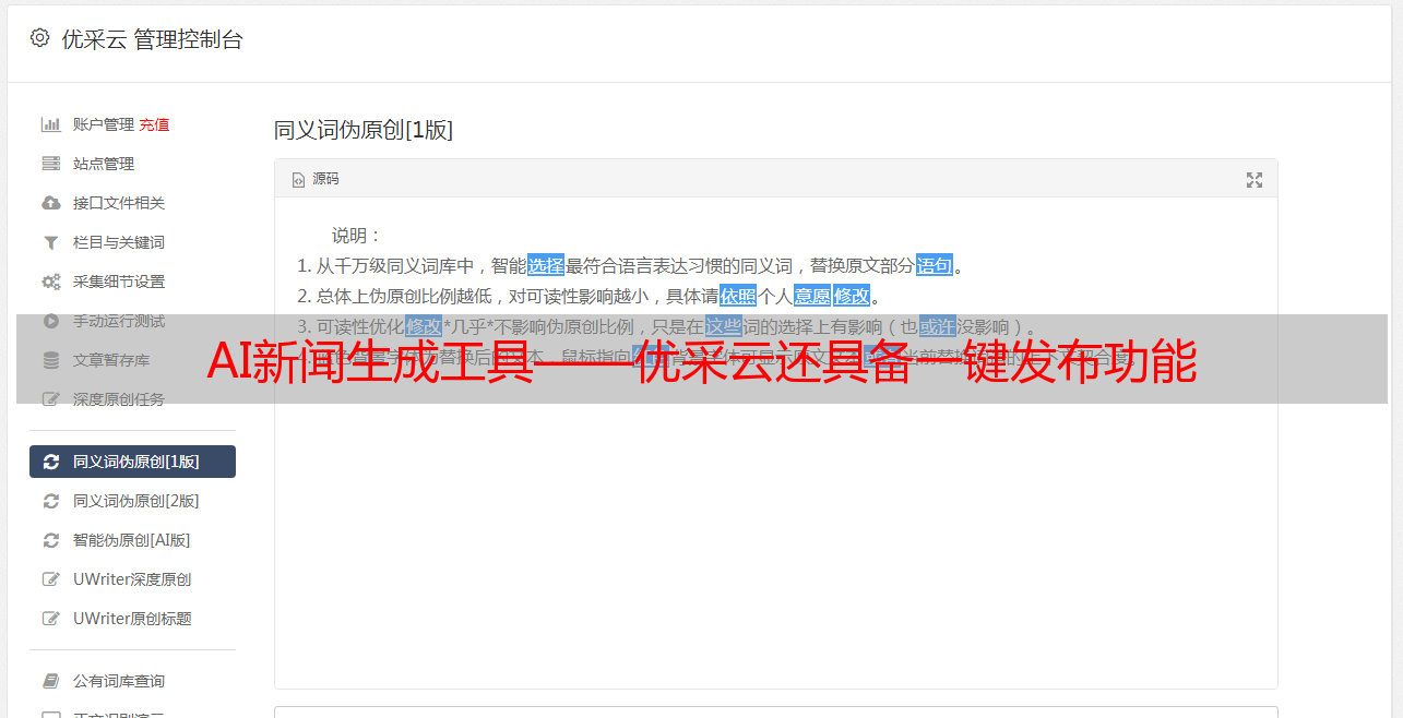 总之,优采云是一款十分强大且方便易用的AI新闻生成工具,如要使用,请前往www.ucaiyun.com下载体验.
