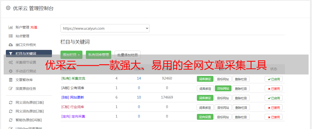 这时就需要引入优采云——一款强大、易用的全网文章采集工具。该工具不但能够有效地将来自各大门户、博客、微博、APP应用商店、微信公众号、小说平台和各大视频平台上的异构信息采集整理归类;此外,还能够根据用户的实际需要定制化采集方式;同时还可以根据内容特征对采集到的内容进行去重处理;最后还能够将采集到的内容保存到excel格式或word格式中。