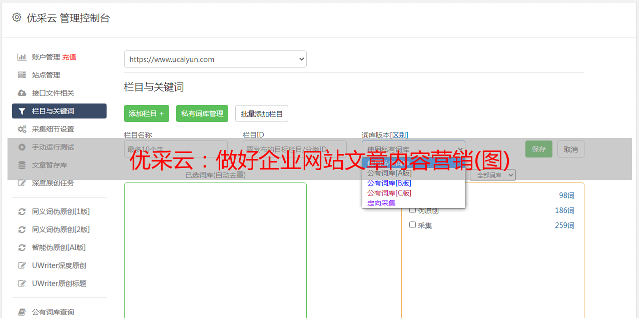 当然,如何在众多原创文章中找到合适的一篇并推广出去也是必不可少的。这里我想介绍一个很好用的工具——优采云(www.ucaiyun.com)。这是一款超强大的原创内容分发平台,既能够快速找到各行各业高质量原创文章,还能够通过微信公众号、QQ公众号、微博、APP应用市场等多种渠道将原创文章进行推广。不仅如此,通过使用该工具,还能够了解原创文章在不同渠道上的浏览量、阅读量以及评论数量等信息;考核文章话题性和互动性,等功能来帮助用户选择合适的原创文章进行推广。