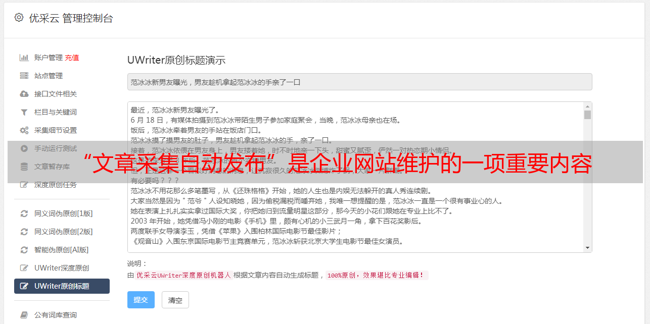 “文章采集自动发布”是企业网站维护的一项重要内容
