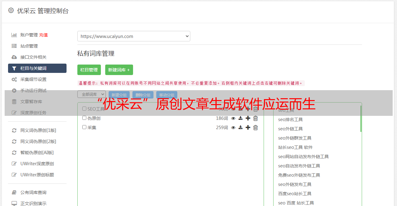 因此,“优采云”原创文章生成软件应运而生。它是一款具有先进技术的原创文章生成平台,能够帮助用户快速生成原创文章。该软件拥有多种功能,将帮助用户根据不同的领域、兴趣和内容创作出独特的原创文章。