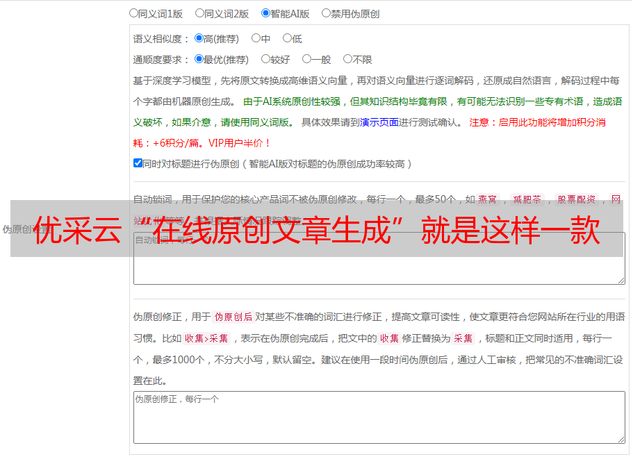 2.关键字优化:优采云在线原创文章*敏*感*词*能够根据用户输入的关键字进行优化,使得文章充满语义并且有效。