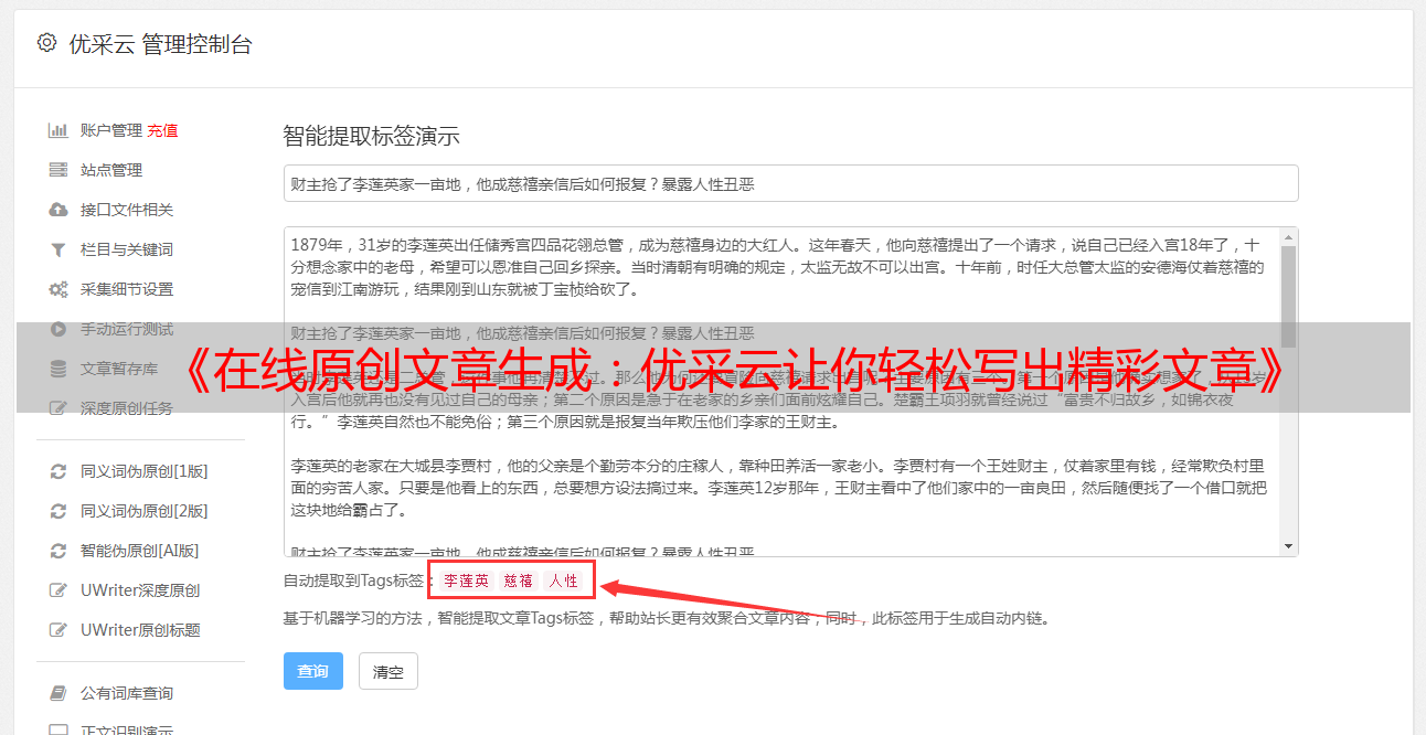 《在线原创文章生成:优采云让你轻松写出精彩文章》