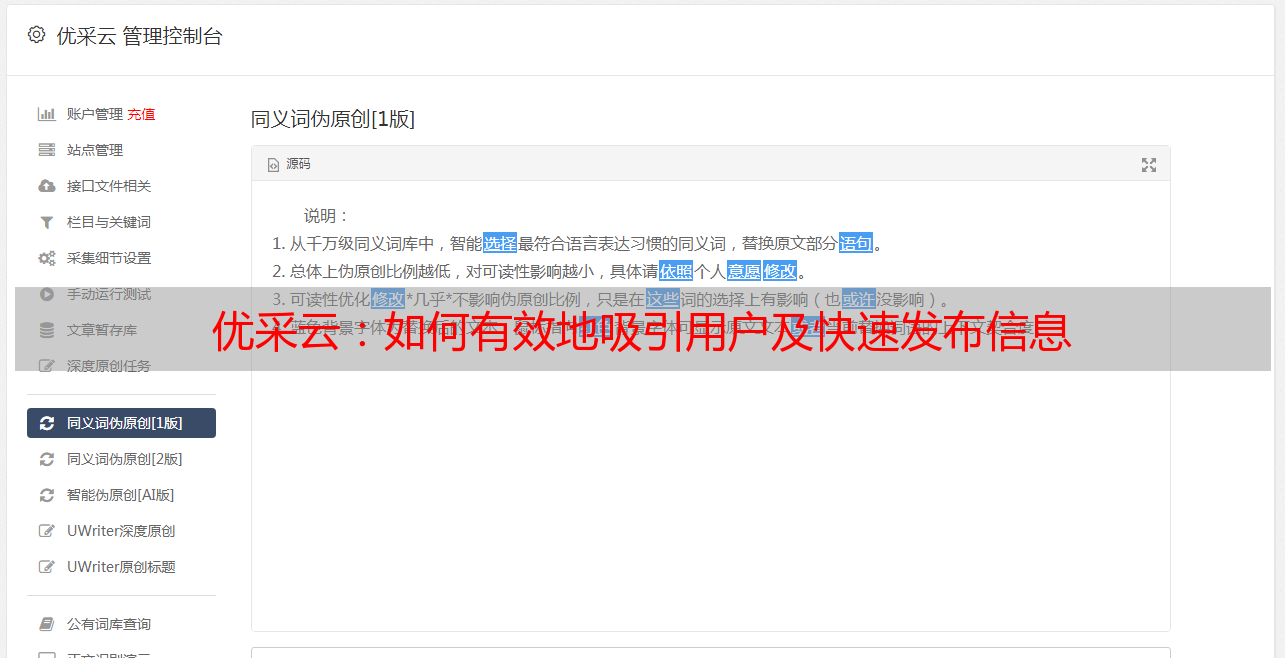 而作为这一领域的先行者之一,优采云(www.ucaiyun.com)以其独特的功能和特性迅速占领了市场。它不仅能够快速采集各类文章信息,还能够根据用户需要对文章内容进行处理、分词、去重、去噪;此外,它还能够根据用户要求将文章内容上传到特定平台进行发布;此外,用户还能够根据其所需要的条件来生成特定的文章内容。