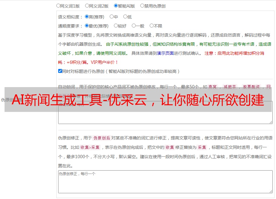 此外,优采云还具有精准性强、语法流畅、语义明确的特点,可以保证生成出来的新闻内容准确无误且易于理解。而且在使用优采云时,用户不需要学习复杂的人工智能理论知识,只需要在界面上选择相应的参数即可快速创作出想要的新闻内容。
