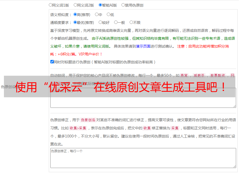 此外,“优采云”是一款免费使用的在线原创文章生成工具,无需下载安装任何软件即可快速上手,使用www.ucaiyun.com即可使用该工具。