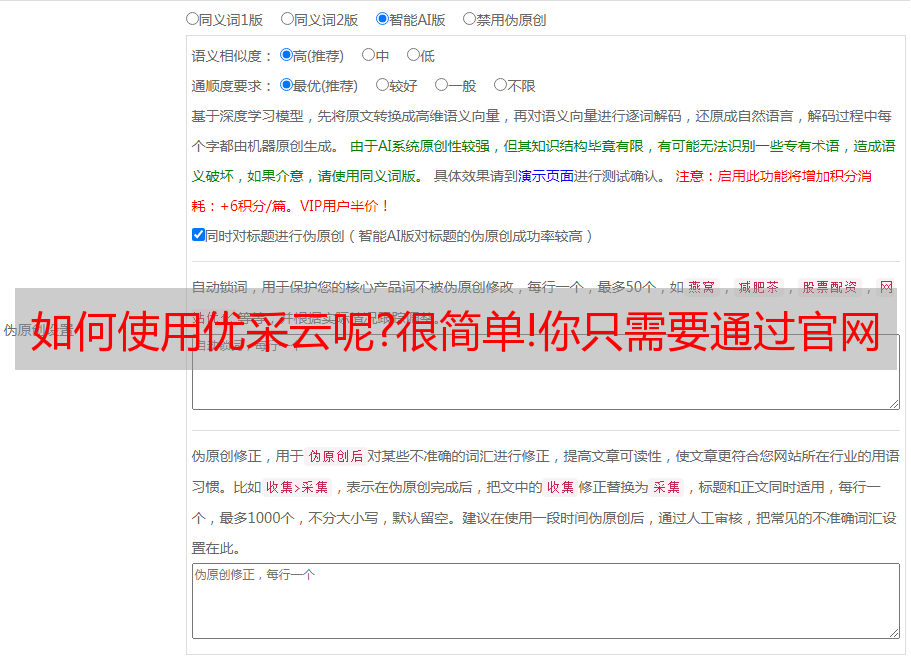 优采云是一款基于AI的软文自动生成软件,它可以帮助用户快速、高效地生成出有质量的文章。它既能够帮助用户降低写作难度,同时也能够在短时间内创造出大量内容。