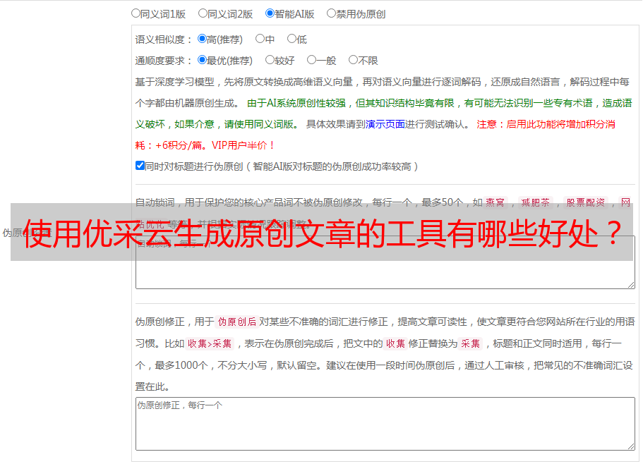 使用优采云生成原创文章有很多好处。首先是时间上的方便性——使用优采云可以节省大量时间来进行原创文章生产,因此能够有效地提升工作效率;其次是准确性方面——优采云通过使用大数据来保障生成原创文章内容准确性;最后是低成本方面——使用优采云生成原创文章可以节省大量人工成本。