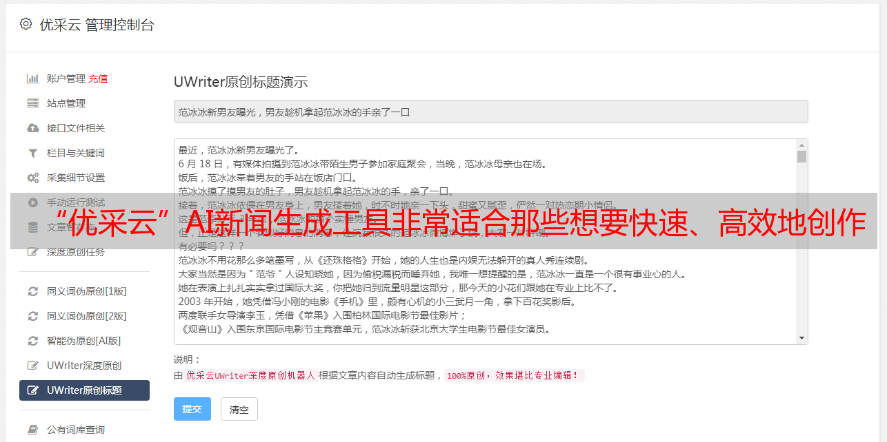 “优采云”AI新闻生成工具非常适合那些想要快速、高效地创作出有价值
