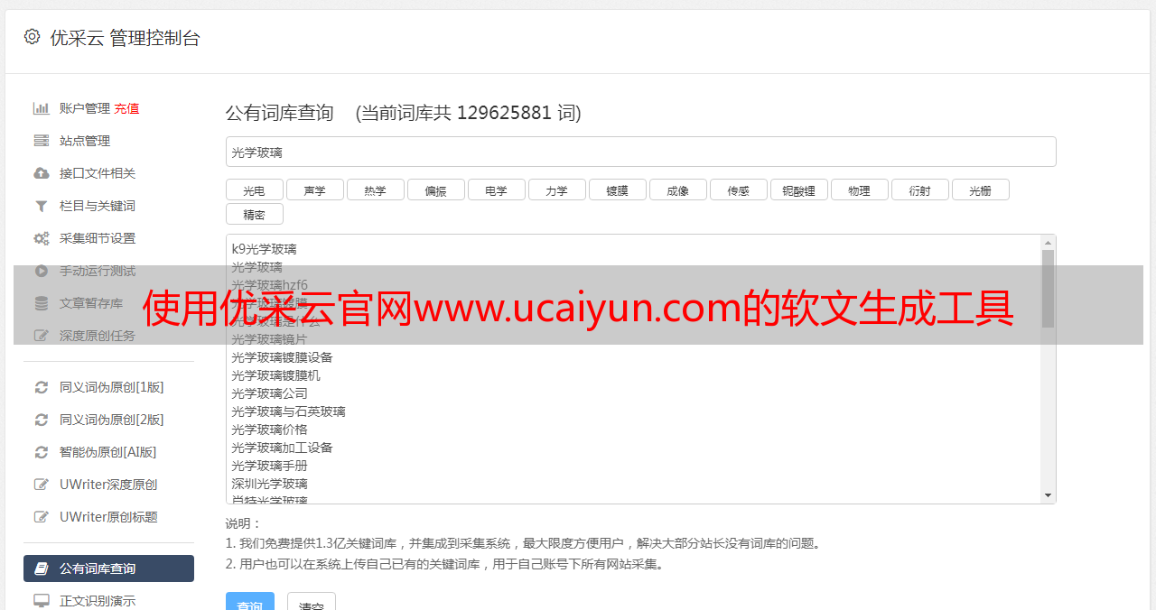 使用优采云官网www.ucaiyun.com的软文生成工具
