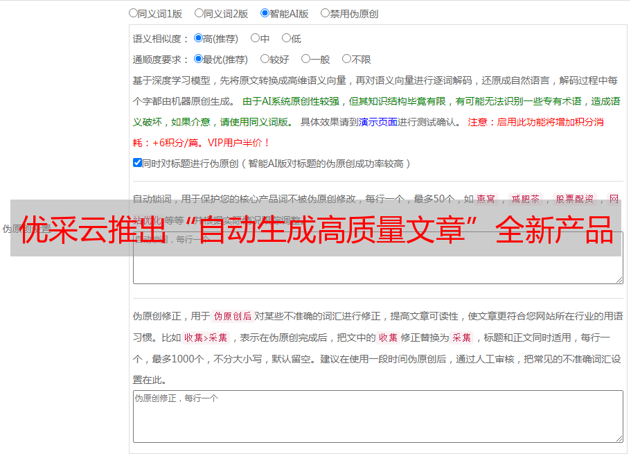 总之,作为一款专业的“自动生成高质量文章”工具,优采云的产品不仅能够快速帮助用户生成合乎要求的内容,而且可以有效地避免重复工作。如果你正在寻找一款助你应对快速发展时代所带来的信息浪潮而不失内容优质度的工具,不妨前往www.ucaiyun.com进行体验!