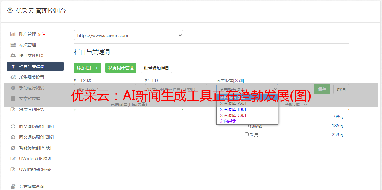 优采云(www.ucaiyun.com)是一个全球领先的AI协作平台,旨在为企业和开发者提供服务和解决方案。作为优采云的一项重要产品,AI新闻生成工具不仅能够根据客户要求快速生成高质量的新闻内容,而且还能够对所发布的内容进行精准性审核。同时,AI新闻生成工具还能够将各种复杂的数据分析过程转化为易于理解的图表和数字,从而使读者对所读内容有一个直观而准确的了解。