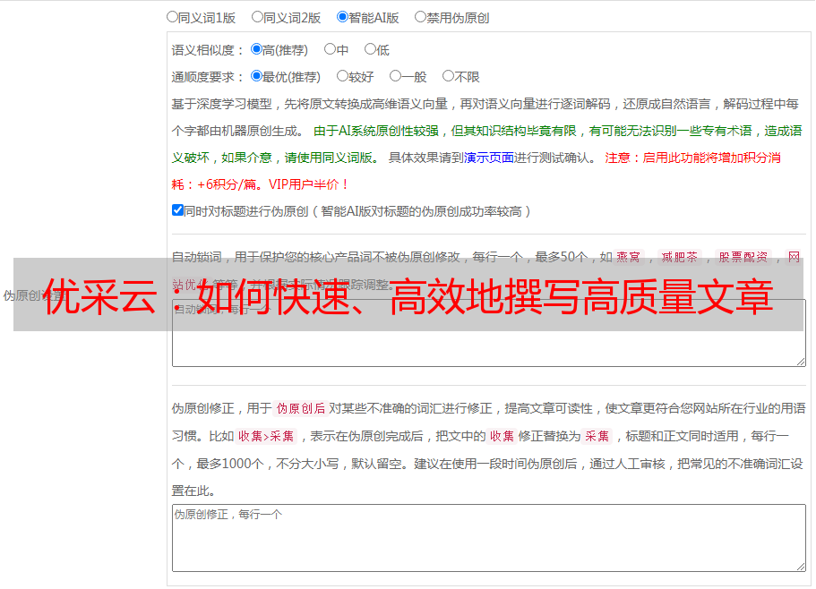 优采云真正意义上将AI+human-in-the-loop机制相结合、将效力带到最大化:有效解决快速、高效地生成高质量文章之困惑,使得手工写作不再是一件枯烦耗时耗力耗神之劳,这也将使得当前市场上大部分人工书写已无法形势耗时耗力之作业都可以得到有效解决,迅速、便捷地取得想要之作品.敬请即刻前往www.ucaiyun.com体验优采云──尤其为中小企业及独立作者带去无上便利!