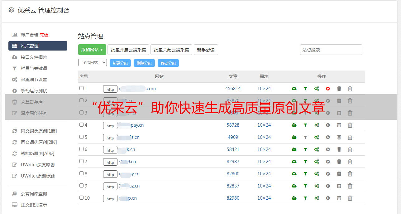 “优采云”助你快速生成高质量原创文章